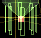 ship absorbing blue enemies, and shooting lasers at the big boss. The green laser also causes damage